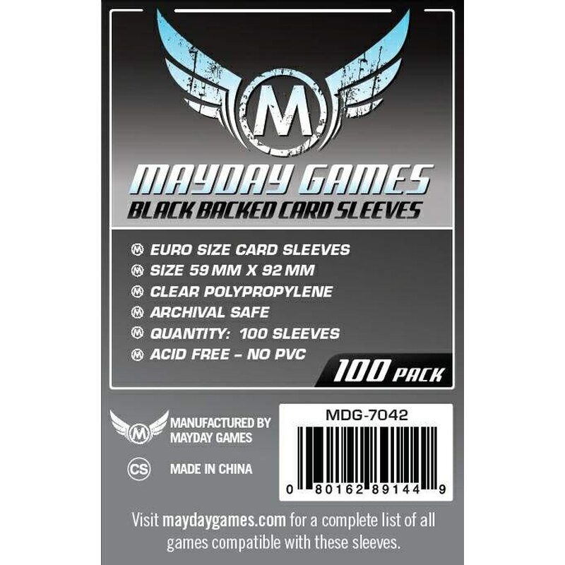 Mayday Games Black Backed Euro Card Sleeves (59x92mm)