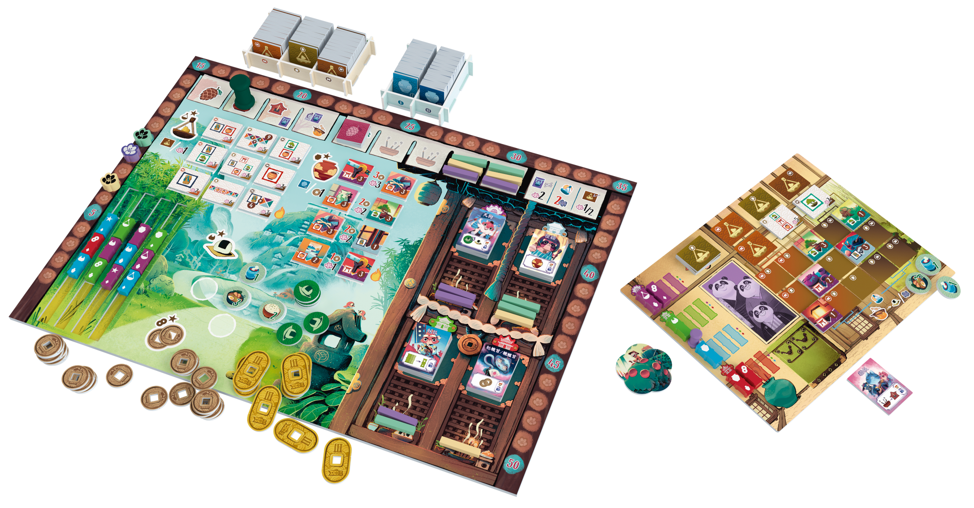 在遊戲中,玩家成為竹林中的伐木人,需要以竹林為生養家糊口。但同時別忘記要祭祀森林的靈,家庭建設和森林發展之間是需要平衡的。遊戲的主要重點是竹,每次用完的竹都會成為肥料推動未生長的竹,而突出來的竹則會自動成為你稍後的行動。這些竹可以用於祭靈,賺錢,起居等一切大小事項。因此如何搶到自己心儀的竹將會是遊戲的關鍵。