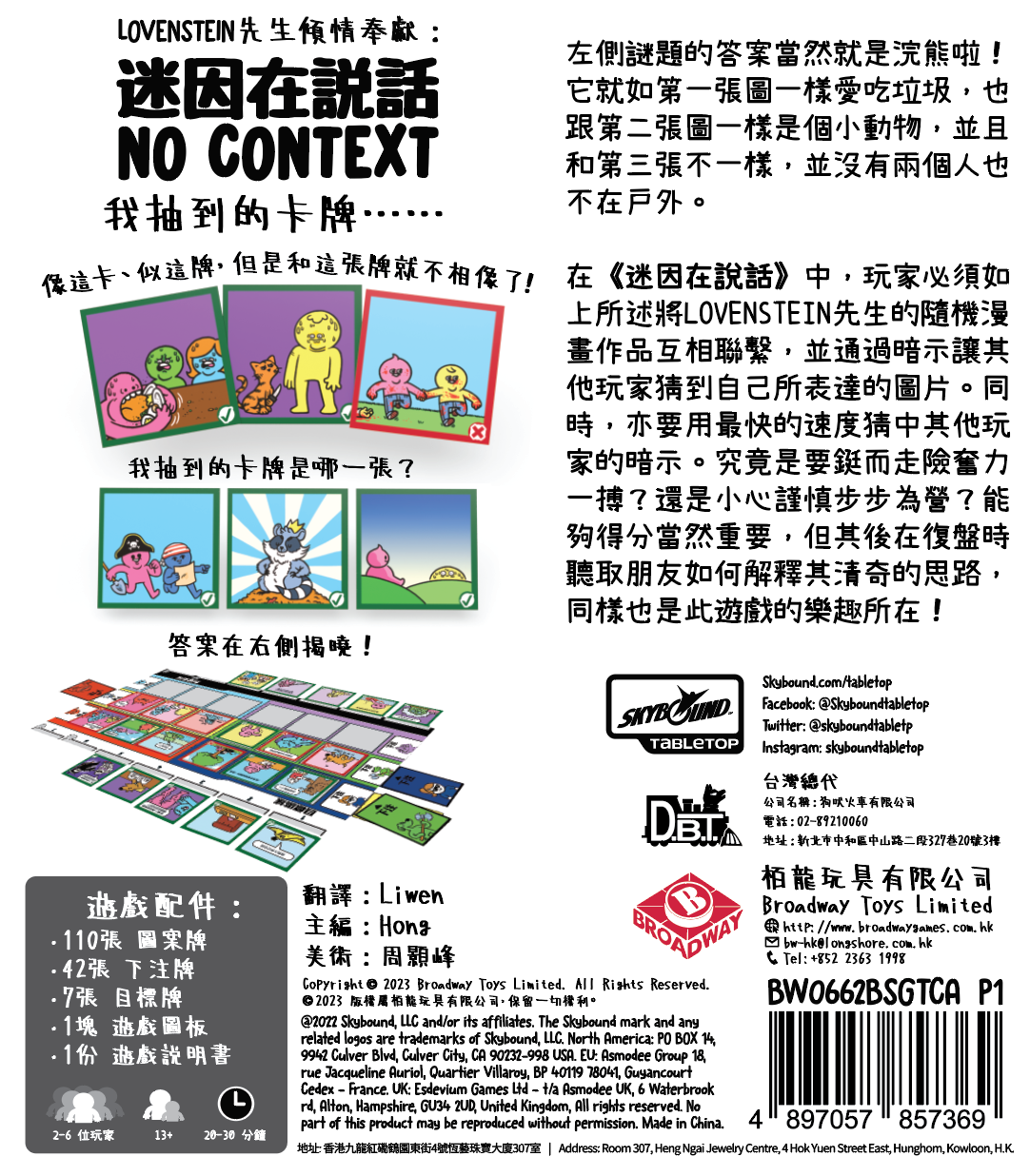 遊戲人數:2-6人遊戲時間:20-30分鐘