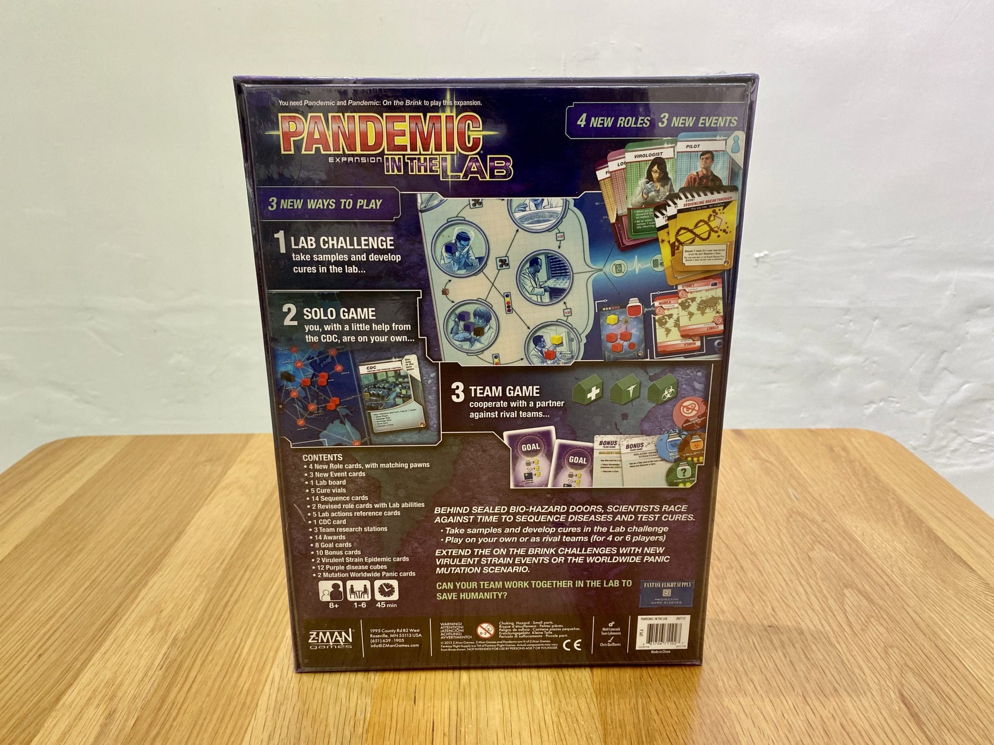 Contents: Rulebook, 60 Contagion Cards, 24 City Cards, 12 Event Cards, 6 WHO Cards, 5 Player Disease Boards, 5 Score Markers, 5 Petri Dishes, 75 Player Disease Cubes, 1 Scoring Board