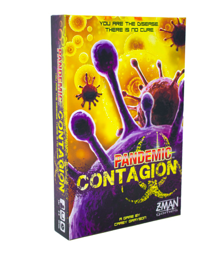 In Pandemic: Contagion, the tables are turned: you are the disease, striking back against humanity! In this decidedly non-cooperative stand-alone game inspired by Pandemic, you compete against other players to exterminate human civilization through worldwide infection. Fuel your actions with cards that can spread disease by infecting new cities across the globe. You can also mutate your disease to accelerate the rate at which you draw cards, infect cities, or resist efforts to curb your growth. The more people you infect and the faster you grow, the more points you’ll score. The disease with the highest death toll at the end of the game wins!